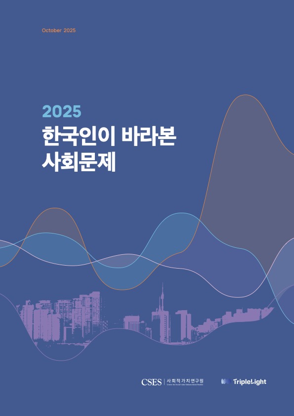 트리플라잇과 한국사회적가치연구원(CSES)이 함께 연구한 '2025 한국인이 바라본 사회문제'가 발간되었습니다. '한국인이 바라본 사회문제'는 2020년부터 매년 국민 1,000명을 대상으로 진행하는 사회문제 인식조사를 토대로 우리나라의 사회문제 현황을 진단하고 미래를 대비하는 전략을 도출하고 있습니다.